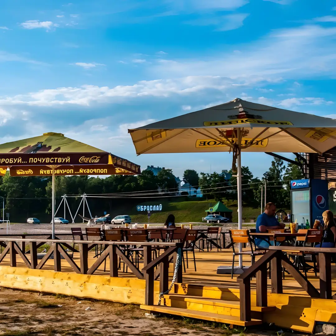 Кафе «Plage» в Браславе — это летняя локация с потрясающим видом на озеро, просторной террасой и уютной атмосферой. В меню — бургеры, пиццы, стейки, коктейли, кальян и многое другое для идеального отдыха. По выходным здесь проходят концерты и дискотеки, а гостей ждут лаунж-зона, 5D-кинотеатр и бесплатный Wi-Fi.